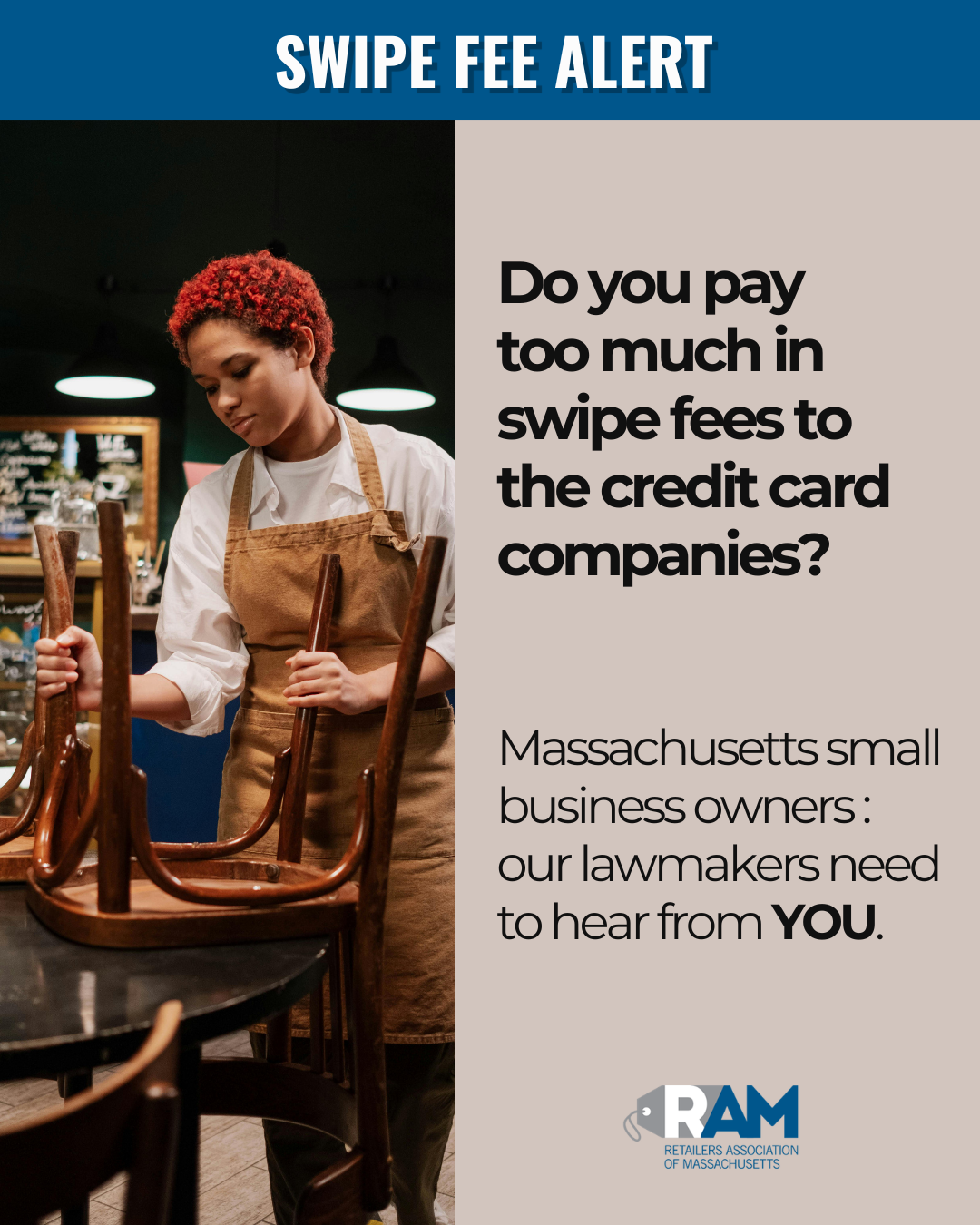 Click here for RAM Member Alert: Swipe Fee Reform in MA - how to attend Commission hearing or submit testimony.